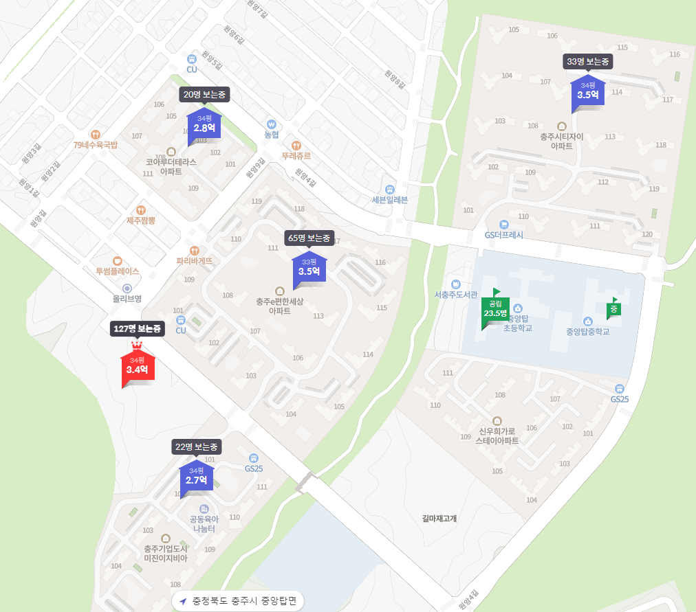한화 포레나 서충주 분양가는 31평 2.8억 34평 3.4억으로 주변 아파트 단지와 비슷하게 나왔다. 주변 단지 시세를 보면 5년 차 이편한세상충주 33평 3.5억, 5년차 충주시티자이 34평 3.4억, 3년차 서충주신도시코아루더클라스아파트 33평 3.5억, 5년차 미진이지비아 더원 34평 2.8억으로 포레나 입주시점 신축 아파트로 보면 오히려 가격이 낮아 보인다. 그래서 오늘 1순위 모집을 했는데 당해로 마감을 했다. 비규제라 분양권 전매 가능이라는 메리트가 있었지만 투자자들이 들어갈 틈은 없었다.