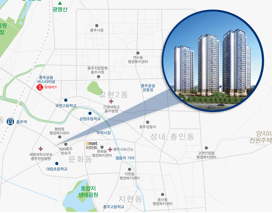 어제 서충주에 이어서 두 번째로 충주 중심부에서 분양을 진행하는 충주 모아미래도를 살펴보자. 공급 위치는 충청북도 충주시 봉방동 180-10번지 일원이며 공급규모는 특별공급 160세대 일반공급 170세대 총 330세대이고 입주시기는 23년 12월 예정이다. 소규모 아파트 단지이지만 한화 포레나 서충주와 위치나 입지, 브랜드 등을 비교해서 보면 좋을 것이다.