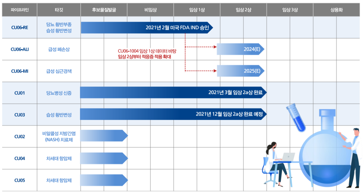 큐라클은 현재 신약개발 중이므로 주요 매출을 내는 단계는 아니다. 그래서 치료제 개발과 임상 2상 단계까지 진행된 치료제가 있어서 상용화까지 얼마 안 남은 상태로 보인다. 개발 완료 이후 미국, 유럽, 아시아 등 해외 매출까지도 염두에 두고 있어서 투자자들에게 어필을 하고 있다. 아직은 개발 단계로 적자 기업이지만 상용화가 가시화된다면 투자자들의 구매력을 높일 수 있을 요인이 될 수도 있을 것이다.