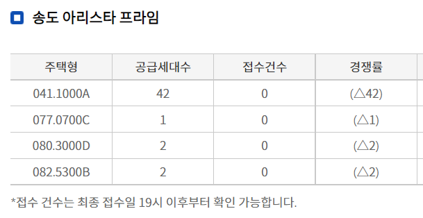 인천시는 현재 매매가 상승률이 높은 상태로 계속 유지되고 있으며 이번에 알아볼 아파트는 어제부터 오늘까지 무순위 입주자를 모집하는 송도 아리스타 프라임이다. 공급 위치는 인천광역시 연수구 송도동 22-6, 22-7번지이며 공급규모는 총 90세대 중 잔여물량 47세대이고 입주시기는 22녀 12월 예정이다. 청약 당시 평균 경쟁률은 25:1을 기록할 정도였는데 소형 주상복합이라 막상 계약을 안하는 사람들이 많았을 것으로 추정된다.
