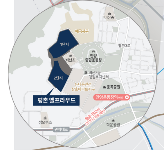 안양시 신축 아파트 분양은 자주 나오는 편은 아니지만 한 번씩 뜨면 엄청난 인기를 실감할 수 있다. 산을 등지고 안양 종합운동장 옆에 위치한 평촌 엘프라우드에 대해 살펴보자. 공급 위치는 경기도 안양시 동안구 비산3동 281-1번지 일원이며 공급규모는 특별공급 340세대 일반공급 349세대 총 689세대이고 입주시기는 2024년 6월 예정이다. 비산 초교 주변지구 주택 재개발지역으로 공급물량은 689세대이지만 총 2,739세대 대단지 아파트이다.