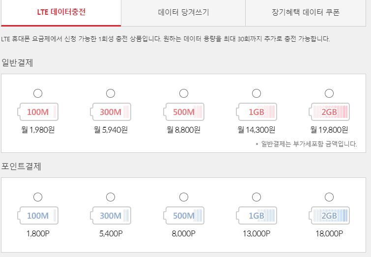 결국 올해 남은 6개월은 한 달 기준으로 2기가 충전쿠폰과 KT는 포인트를 주지만 잘 사용하지 않기 때문에 데이터 충전하는데 2기가 추가하여 총 10기가를 만들어 사용하기로 했다.