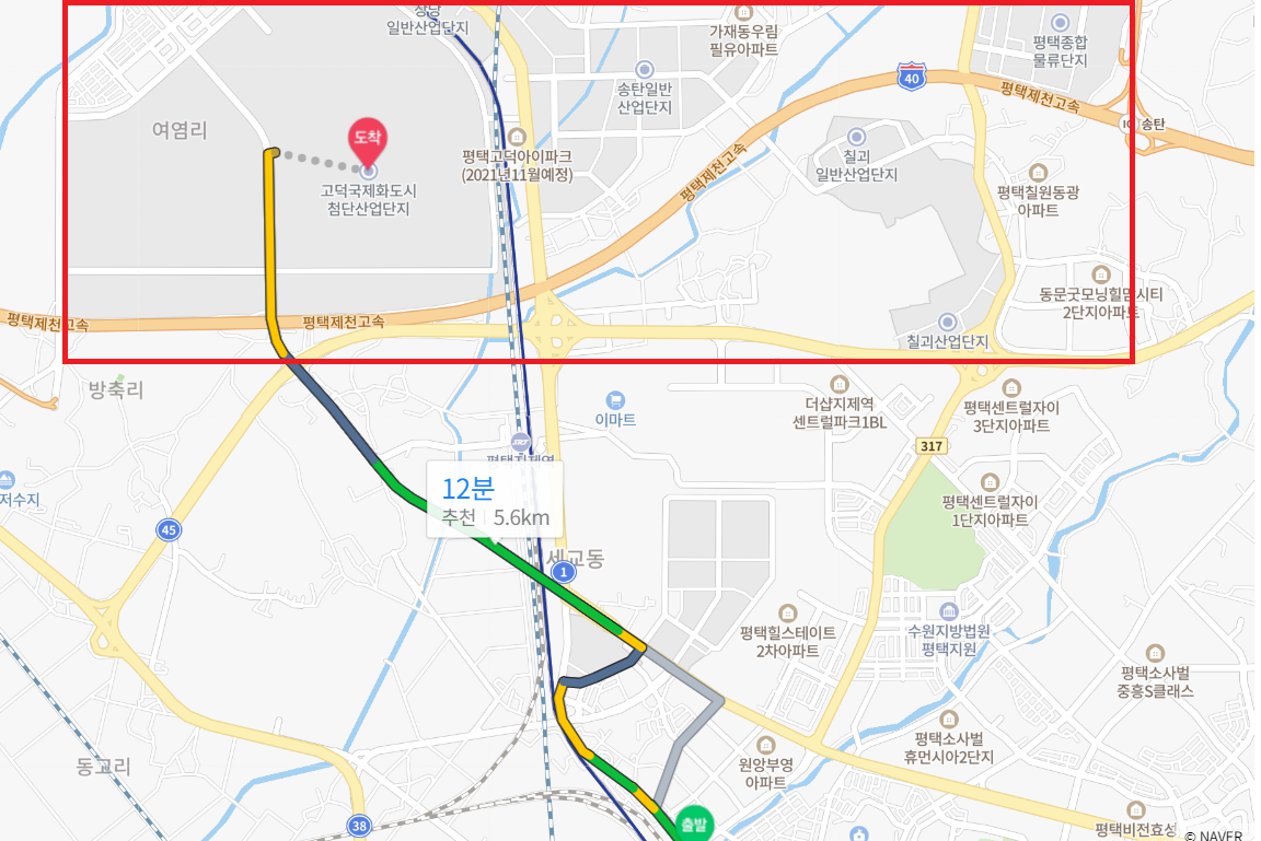주변 산업단지에서 자차로 출퇴근을 하기에 좋은 위치이다. 가장 가까운 산업단지로 평택(세교)일반산업단지가 있고 자차 15분 내외로 고덕 국제화지구 일반산업단지(삼성전자), 송탄 일반산업단지, 평택 브레인시티(계획), 철괴 일반산업단지, 쌍용자동차 공장, 평택 종합물류단지 등이 있다.