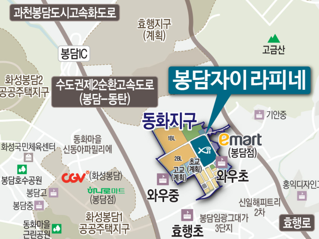 경기도 화성시 동화지구가 개발 예정지인데 분양을 진행하는 봉담 자이 라피네를 살펴보자. 공급 위치는 경기도 화성시 봉담 동화지구 A-3블록이며 공급규모는 특별공급 361세대 일반공급 369세대 총 750세대이고 입주시기는 2023년 10월 예정이다. 화성시 봉담은 교통이 좋은 곳이 아니라서 청약하기 망설여지는 곳이다. 지역에 실거주하는 사람들은 철도망 구축이 절실할 텐데 어떤 노선이 어디에 들어갈 예정인지 알아보도록 하자.