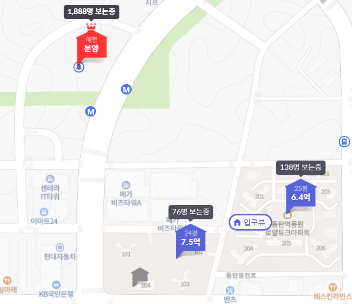 금강펜테리움 분양가는 52형 3.4억 58형 4억 정도이며 주변시세는 현재 1년차 동탄 역대 방디 엠시티 56형 7.5억, 4년 차 동탄역 동원 로열 듀크 1차 60형 6.4억으로 현재 최소 2억 이상 저렴하게 나온 분양가라는 것을 알 수 있다. 대형 평수가 없어서 추첨제 제외 가점제만 있어서 아쉽지만 동탄 실거주민에게는 좋은 조건이라고 판단된다. 오늘 특별공급을 진행했고 내일 일반공급 청약을 기다렸던 사람들이 많을 것이다.